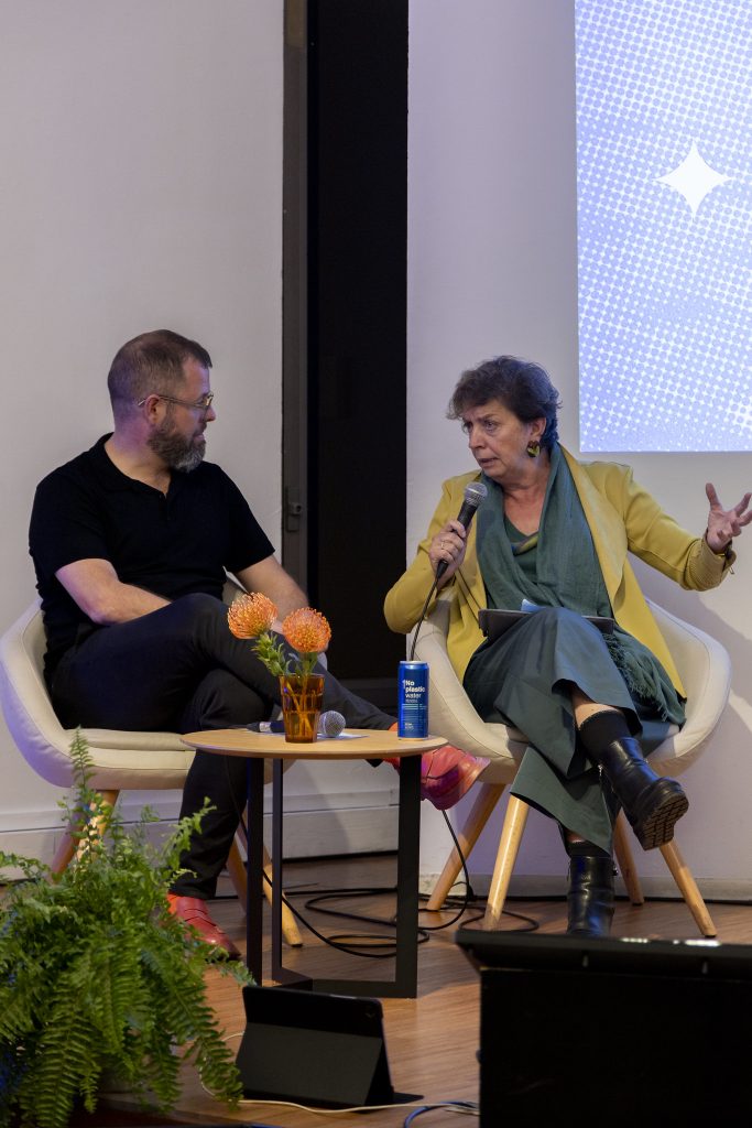 In the first round of questions, they reflected on how art can expand spaces for decision-making and contribute to new forms of ecological governance. They agreed that cultural practices can open up places where humans and non-humans dialogue, where alliances diversify and where more sensitive and permeable institutionalities emerge.