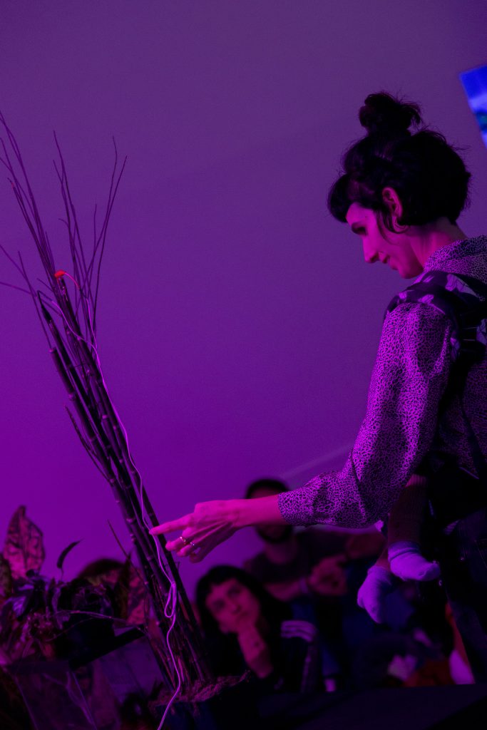 To end the session, we enjoyed a performative action by Ferran Lega in which we listened to sound activation of river plants. We sat on the floor, touched the plants and listened to how they reacted to our energy.
