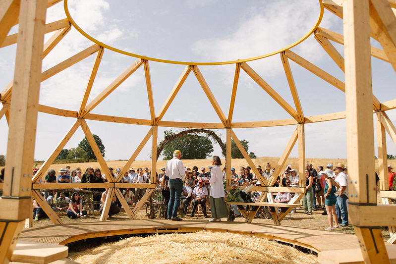 Y este poner el cuerpo alcanzó su momento más especial cuando dos de las comitentes, Carolina y Marta, nos invitaron a juntarnos tocándonos en un gran círculo o cuando hicimos una gran espiral cogidos de la mano para entrar en la pieza Solaridades. Estos dos momentos tienen que ver con la posibilidad de generar amor entre cuerpos y sentires que nunca se han encontrado. Cuerpos ancianos, cuerpos sordos, cuerpos infantiles, cuerpos urbanitas, cuerpos alejados territorialmente o cuerpos vecinos. Cuerpos que nunca se hubiesen encontrado para amarse de esta manera si no hubiese una lucha detrás de estos actos. Una lucha que las/os comitentes no han acabado, porque para luchar primero hay que reconocer cuál es realmente el deseo profundo que está sumergido bajo la maraña de pensamientos que nos lo impiden ver. Y esto es lo que hemos hecho en Narrativas solares: darnos cuenta, reparar en lo que somos y en lo que ya estamos haciendo.